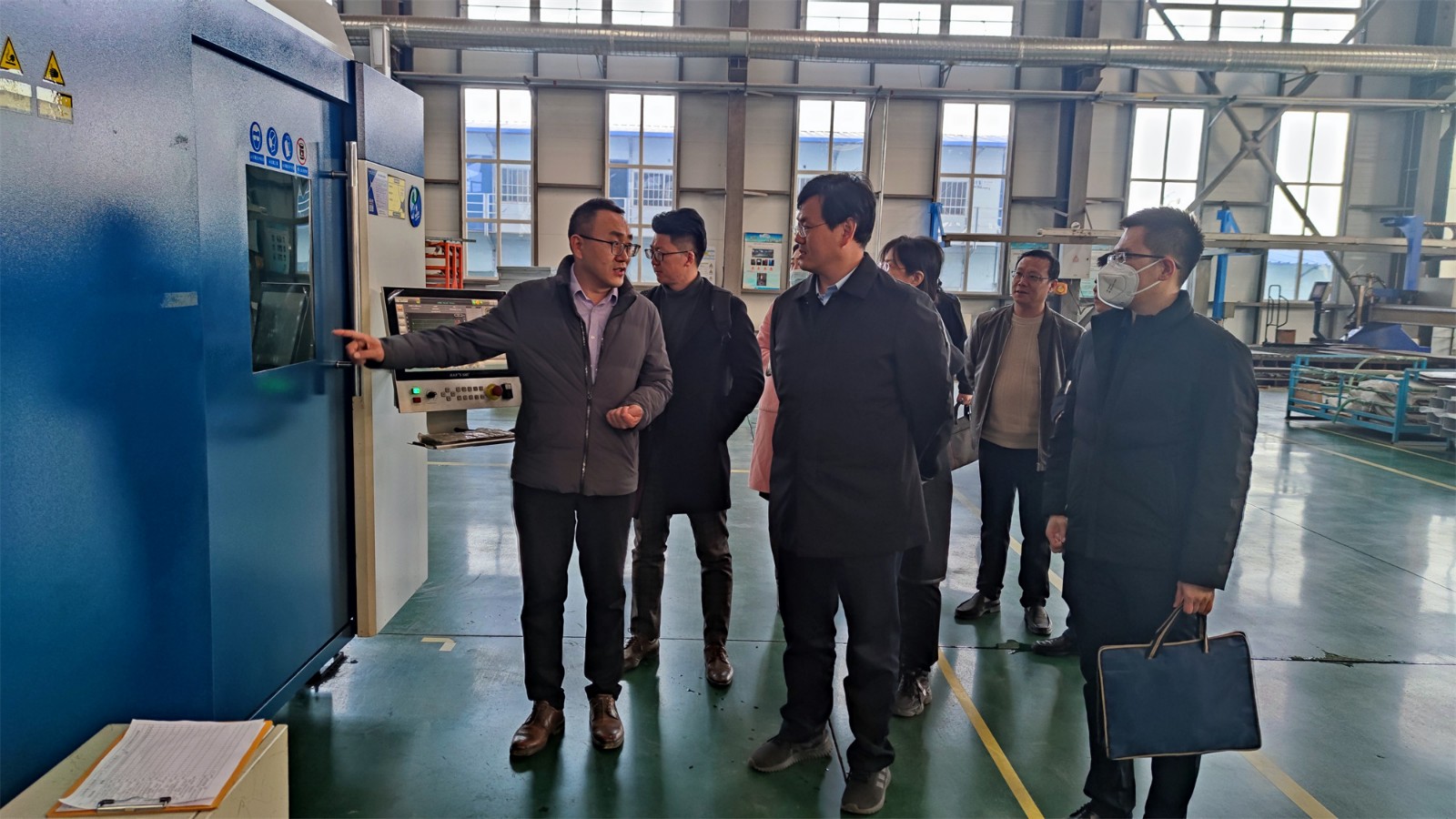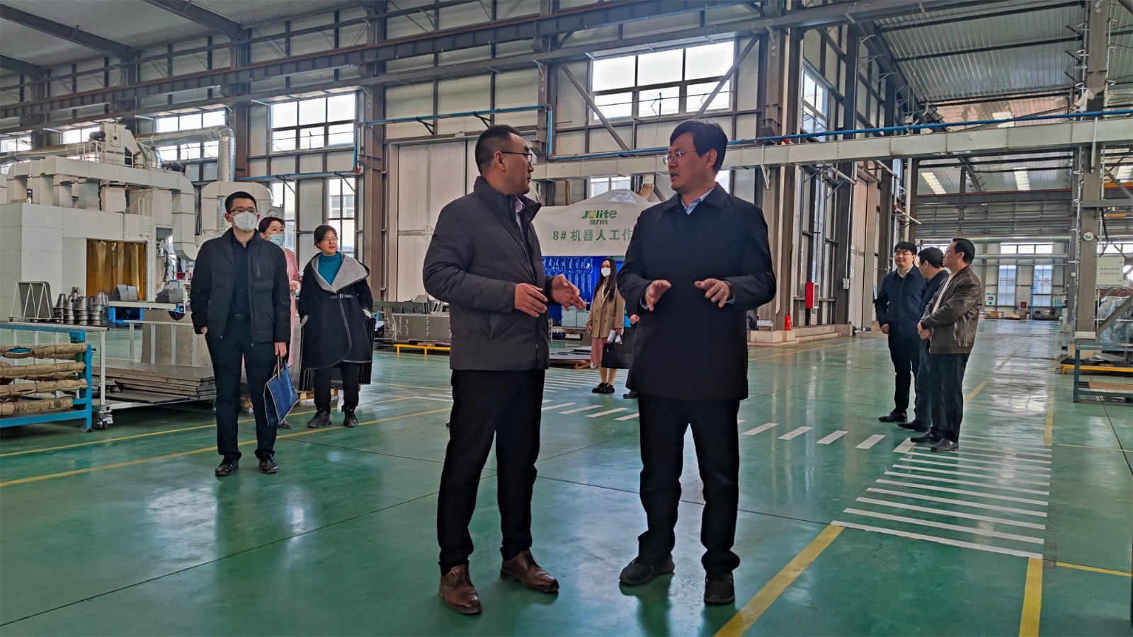 尹處長一行來到工廠廠房,參觀了生產(chǎn)現(xiàn)場(chǎng),詳細(xì)詢問了項(xiàng)目投產(chǎn)情況。高總經(jīng)理向尹處長匯報(bào)了聚力特工業(yè)設(shè)備智能制造產(chǎn)業(yè)化項(xiàng)目的建設(shè)進(jìn)程、生產(chǎn)能力和發(fā)展前景,并對(duì)各級(jí)政府在疫情期間全力保障企業(yè)的生產(chǎn)生活表示了衷心的感謝。