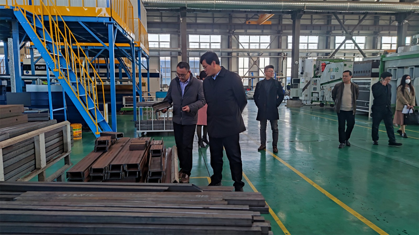 在公司1號(hào)生產(chǎn)車間,高總經(jīng)理向尹處長重點(diǎn)講解了聚力特生產(chǎn)線的流程與技術(shù)優(yōu)勢(shì):通過數(shù)控激光切割機(jī)、全自動(dòng)折彎機(jī)、智能焊接機(jī)器人和靜電噴涂生產(chǎn)線,實(shí)現(xiàn)了高自動(dòng)化、高精度、高效率生產(chǎn),保證了產(chǎn)品質(zhì)量穩(wěn)定、交付及時(shí)和客戶的滿意。