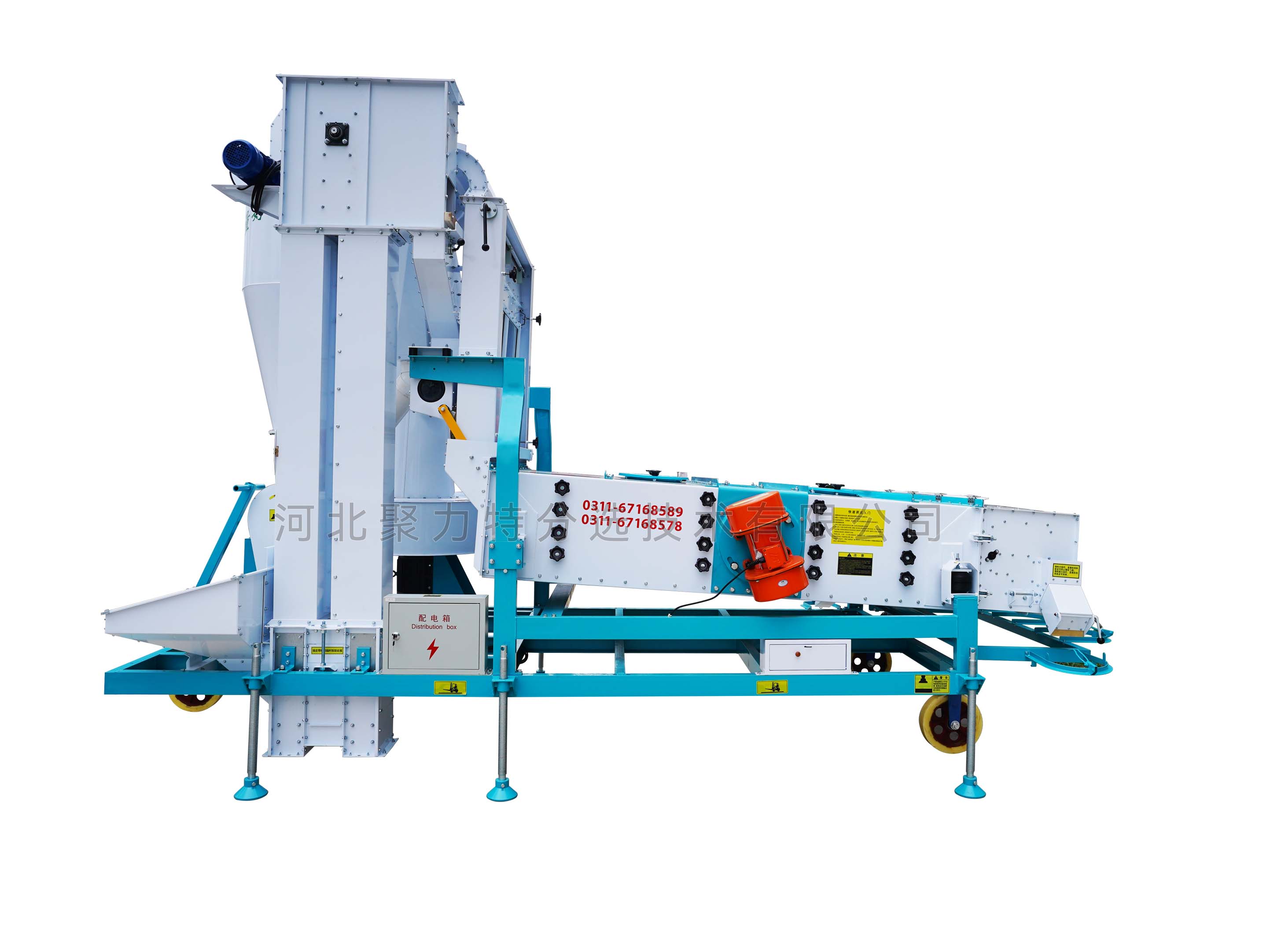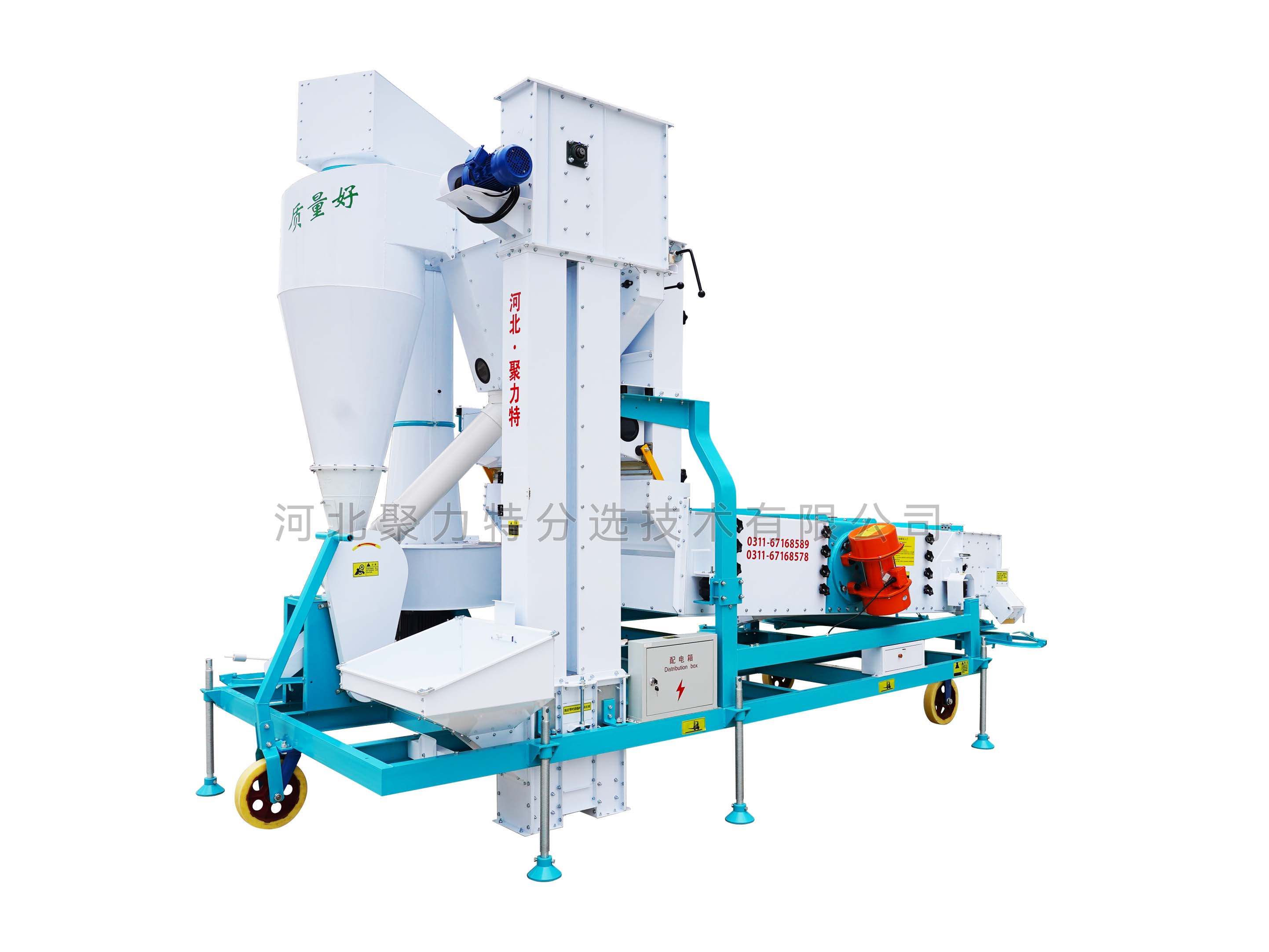 1、本機增加二次除塵,能將輕雜質中秕粒、秸稈和粉塵糠殼分離開;