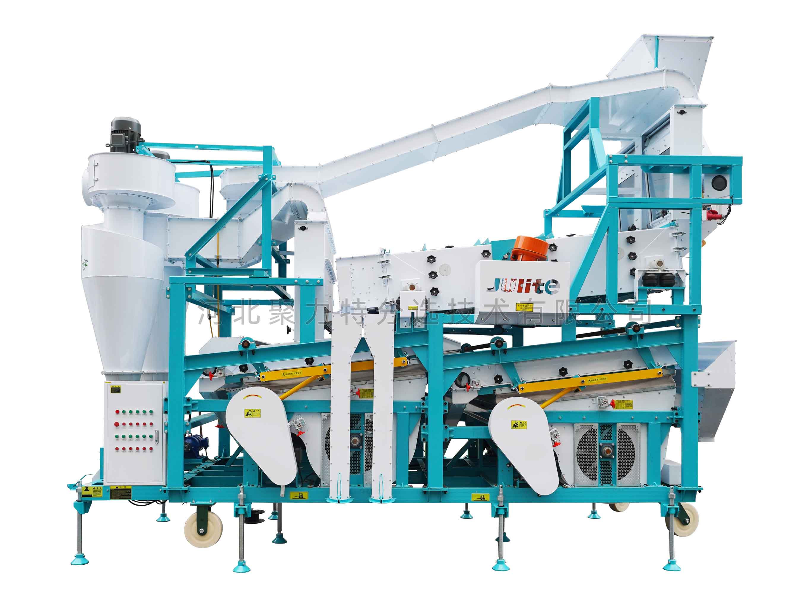 2、采用雙風(fēng)篩、雙比重臺、加寬篩箱結(jié)構(gòu),確保產(chǎn)量大、凈度高;